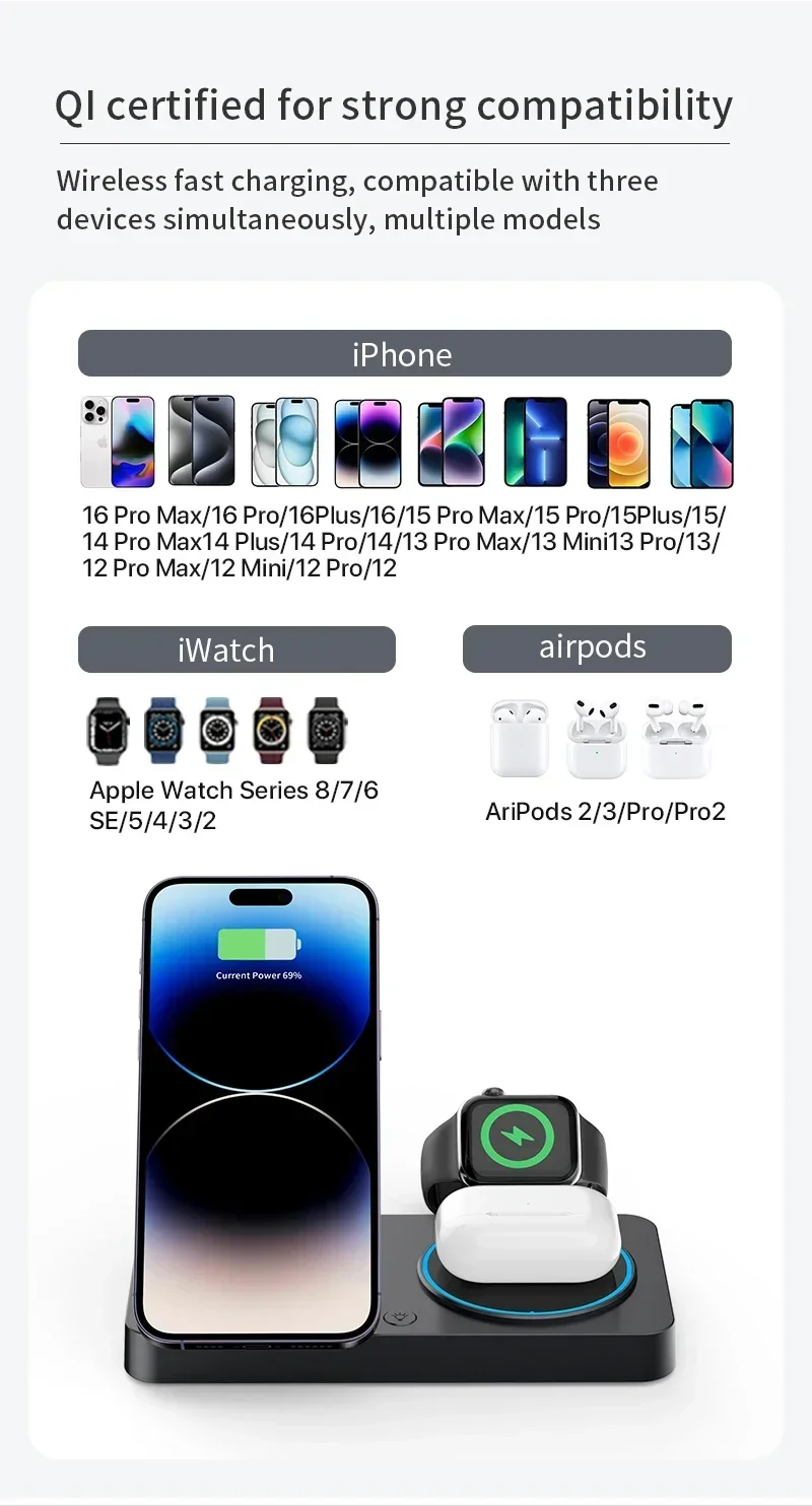 [ Universal Compatibility ]: for Apple charging dock for most of for apple devices. Compatible With for iWatch series 10/9/8/7/6/SE/5/4/3/2/1 & for Apple iWatch +/Sport/Edition/Hermes; Compatible With for AriPods Pro/2/1; Compatible With For Magsafe iPhone16-12 series, for iPhone 11 Pro Max, for iPhone 11 Pro, for iPhone 11, for iPhone SE (2nd generation), for iPhone XS MAX, for iPhone XS, for iPhone XR, for iPhone X, for iPhone 8 Plus, for iPhone 8.