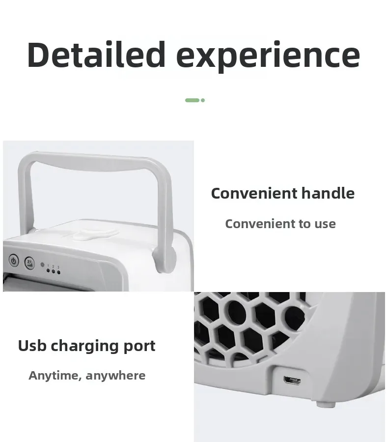 • Water Cooling Fan : The built-in water cooling fan ensures efficient cooling, providing a refreshing breeze wherever you need it.